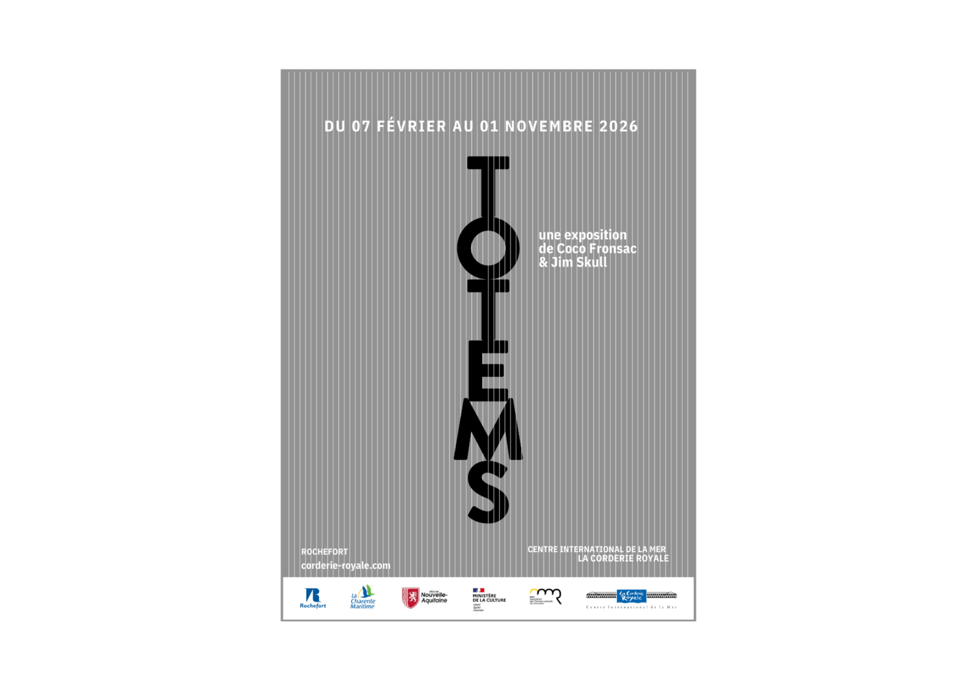 À la Corderie Royale, l’exposition Totems propose une installation spectaculaire et onirique. Imaginée et scénographiée par les artistes Coco Fronsac et Jim Skull, elle célèbre la beauté du cordage et des fibres maritimes à travers une esthétique contemporaine, entre savoir-faire et poésie visuelle.