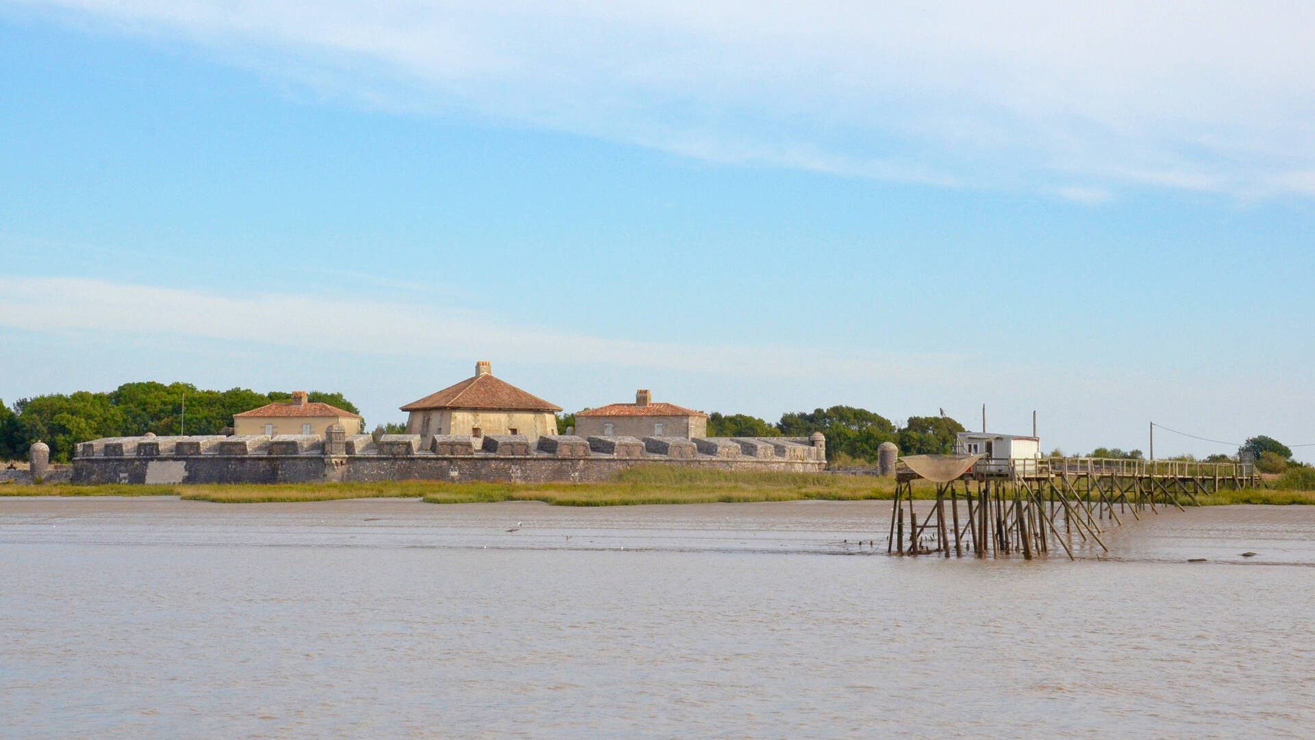 Face à nous, tel un confetti posé sur l’eau entourés de carrelets, Madame et son fort. C’est la plus petite des îles charentaises de par sa superficie mais elle est tellement grande par Nature !