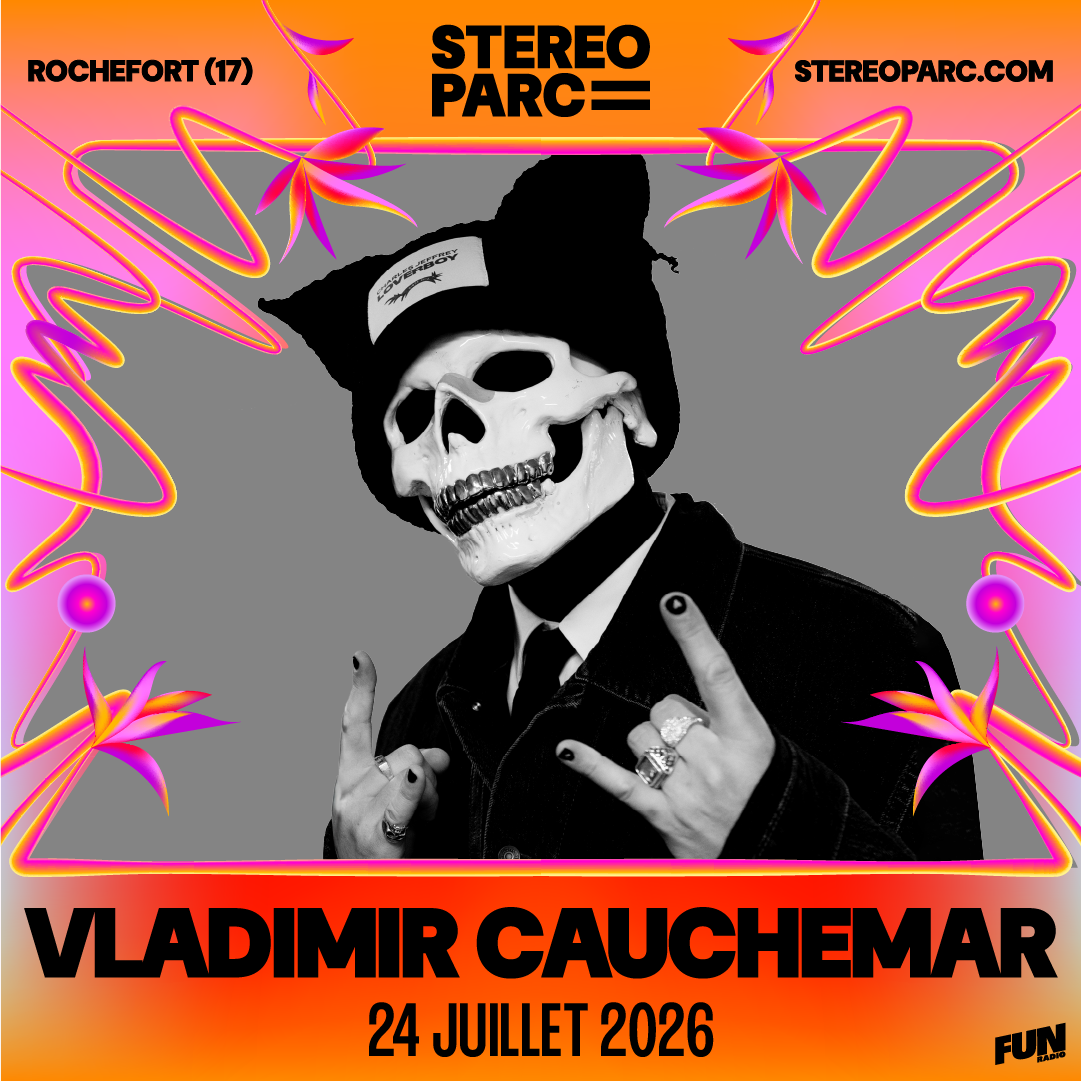 Vladimir Cauchemar sera lui aussi de la partie pour cette édition du Stereoparc. Artiste incontournable de la scène électro française, il s’est imposé grâce à un univers unique mêlant basses percutantes, sonorités sombres et identité visuelle forte. Et revient pour la troisième fois sur la scène du Srereoparc.